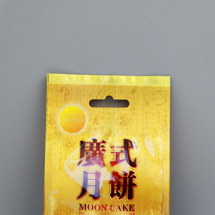 本產品為亮面塑料復合四邊封 包裝袋 ,塑料包裝保持月餅風味與品質,防止月餅氧化變質。四邊封每條邊都經過均勻的熱封,成袋后的產品密封性較好。巨人包裝選擇環保油墨,復合